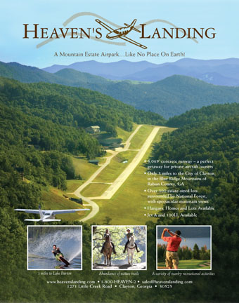 Heavens Landing is an airpark located in the beautiful Blue Ridge Mountains in Clayton Georgia. This airpark is picturesque has 5000' of concrete runway, a new $3ml clubhouse, GPS approach, and amazing features and amenities. Nice video segment here, slideshow of the property and tenants here. Heaven’s Landing is located in the Blue Ridge Mountains of Georgia, about 100 miles north of Atlanta.